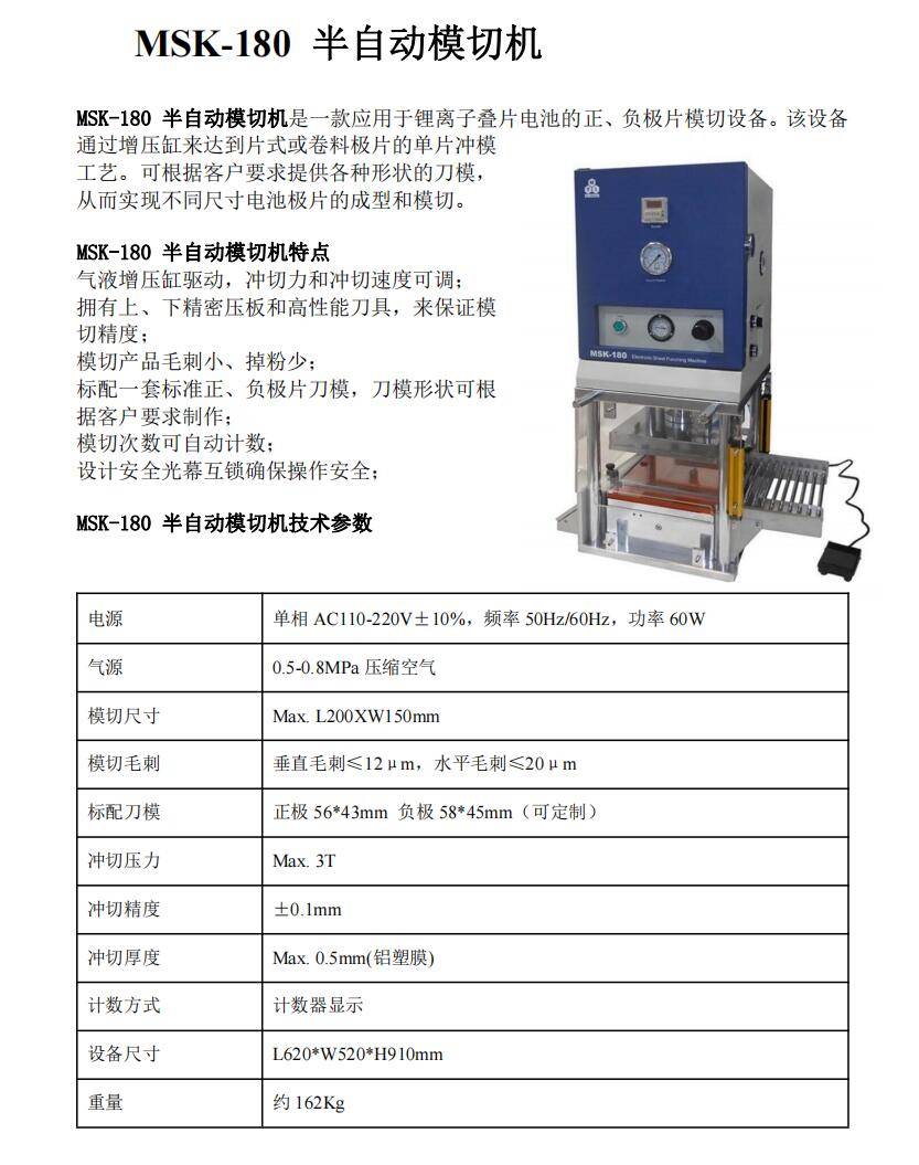 MSK-180 半自动模切机用于锂离子叠片电池的正、负极片模切设备